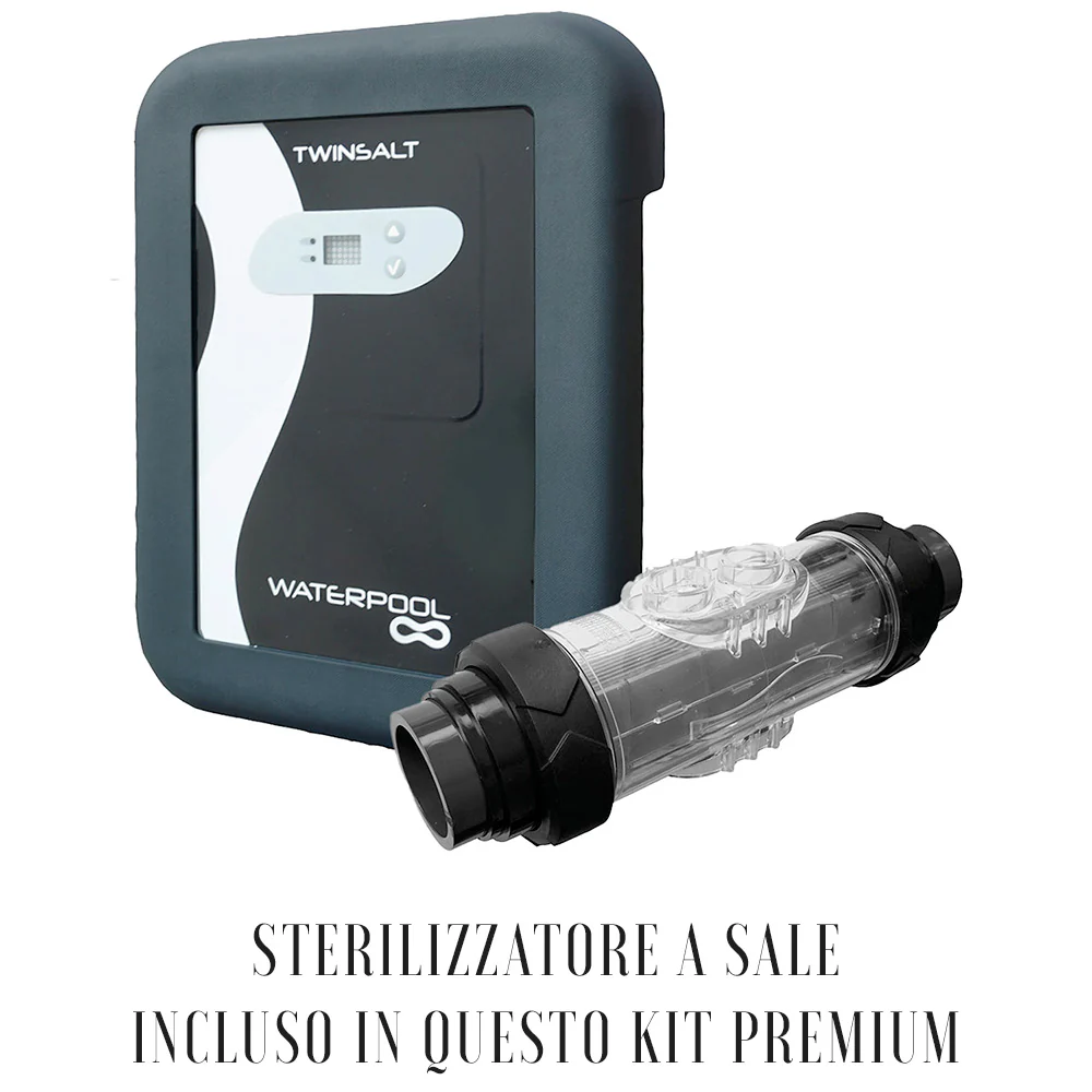 NOVITA’ 2025: Nel Kit Piscina Premium abbiamo incluso anche lo sterilizzatore a sale, il bordo, la scala in acciaio inox AISI 316, l’illuminazione a LED ed il kit pulizia per la tua piscina!
