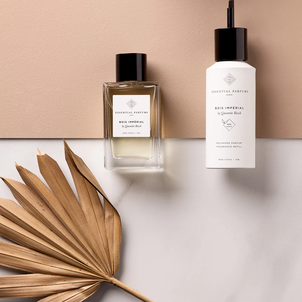 L’alcool utilizzato da Essential Parfums è sostenibile e di origine vegetale (deriva dalla barbabietola), la formulazione non contiene coloranti ed è naturale al 93%.