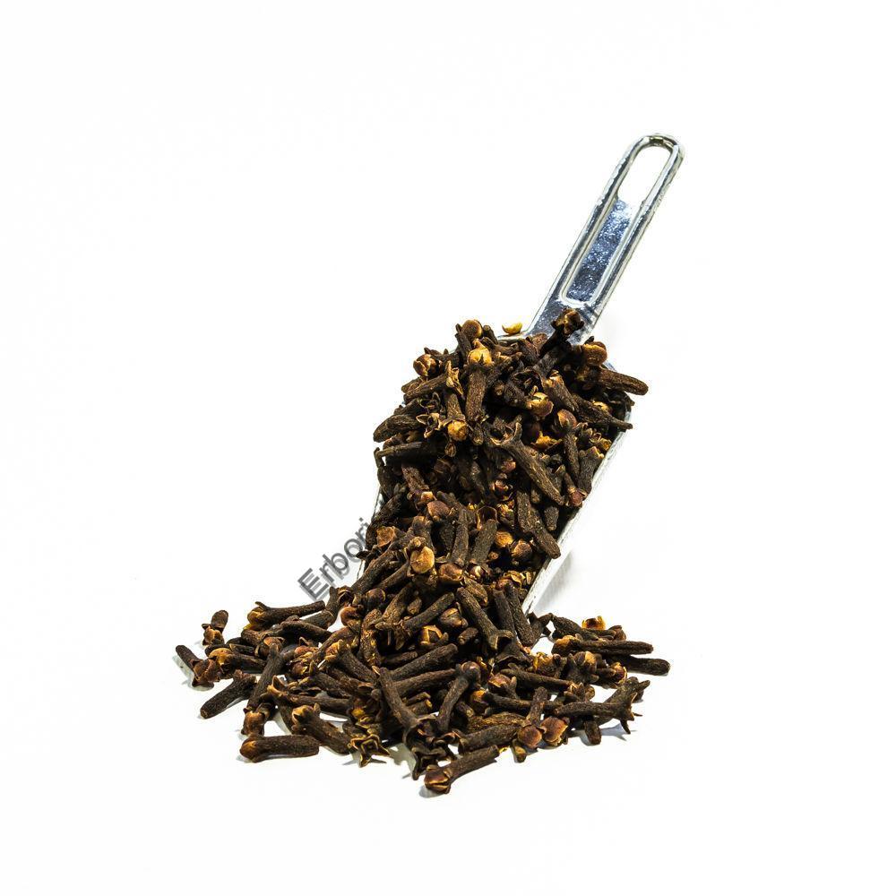 I chiodi di Garofano sono una della spezie più commerciate. Sono costituiti dai boccioli ancora chiusi di un piccolo albero sempreverde originario delle Molucche. Le prime testimonianze del loro uso si rintracciano nell’antica letteratura cinese. Cortigiani e ufficiali di stato avevano l’obbligo di tenere in bocca alcuni chiedi di Garofano per profumarsi l’alito quando si rivolgevano all’imperatore. Nel II secolo d.C. venivano trasportati ad Alessandria con i convogli di carovane dei mercanti, che ne diffusero lentamente l’uso in Europa. Nel XVI secolo i Portoghesi ne controllavano il traffico, ma ad essi si sostituirono, dal 1605, gli Olandesi, che ne limitarono la coltivazione ad una sola isola. Nel 1770 i Francesi riuscirono ad esportare illegalmente dall’isola alcuni semenzali della pianta con i quali poterono gradualmente intraprendere la coltivazione a Mauritius e Bourbon. Nuove piantagioni furono infine create a Zanzibar e in Madagascar, che ne è oggi il maggiore esportatore. I chiodi di Garofano costituiscono condimento aromatico per carni ed intingoli e servono per la preparazione di droghe composte. Oltre all’utilizzo in cucina i chiodi di Garofano vengono impiegati in fitoterapia per uso interno e in fitocosmesi per uso esterno.