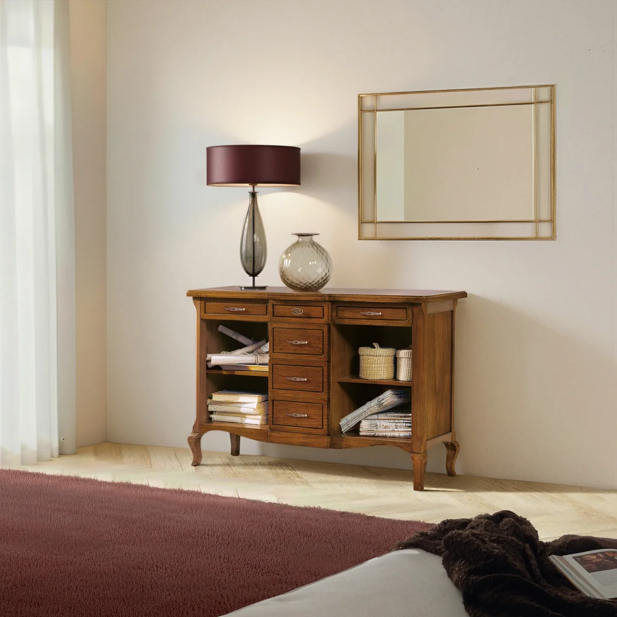 Consolle Classica con 6 Cassetti e 2 Ripiani – Scheda tecnica
