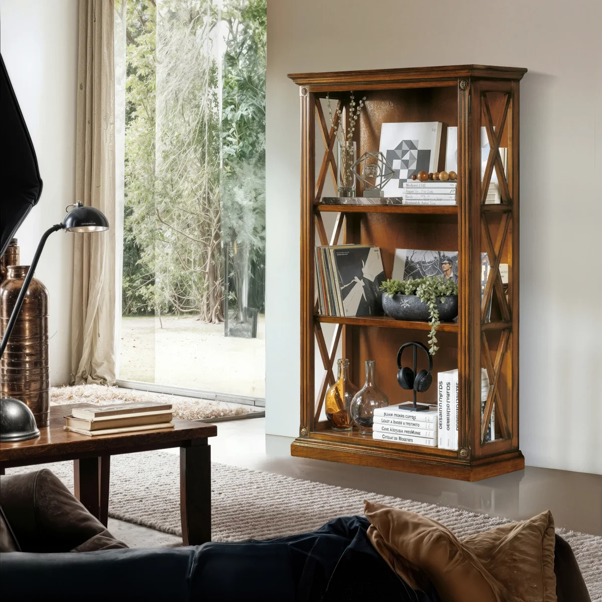 Ogni finitura è eseguita a mano dai maestri artigiani Piombini: patinature e lavorazioni che valorizzano la venatura del legno e rendono ogni libreria un pezzo unico, pensato per durare nel tempo e arricchire la casa con uno stile inconfondibile.