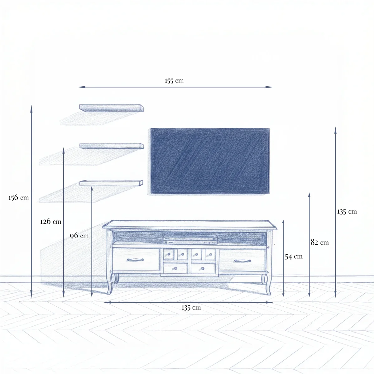 Porta TV Classico un Cassetto un Vano Giorno e Mensole a Parete – Tiziano