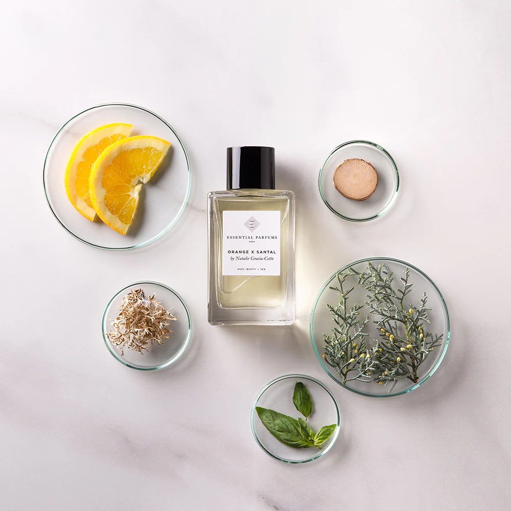 Orange x Santal è un’eau de parfum agrumata e unisex. Radiosi e gioiosi, l’arancio amaro naturale e il legno di sandalo ti trasporteranno sulle coste italiane. Il succo brillante dell’arancia è compensato dall’amarezza aromatica della sua buccia, arricchita dal basilico egiziano. Il muschio di quercia francese fornisce un accordo chypre, mentre il legno naturale di cipresso francese e il legno di sandalo australiano ancorano le luminose note di testa. Essential Parfums sceglie un olio di sandalo naturale, raccolto dalle comunità aborigene dell’Australia, promuovendo una fornitura sostenibile.