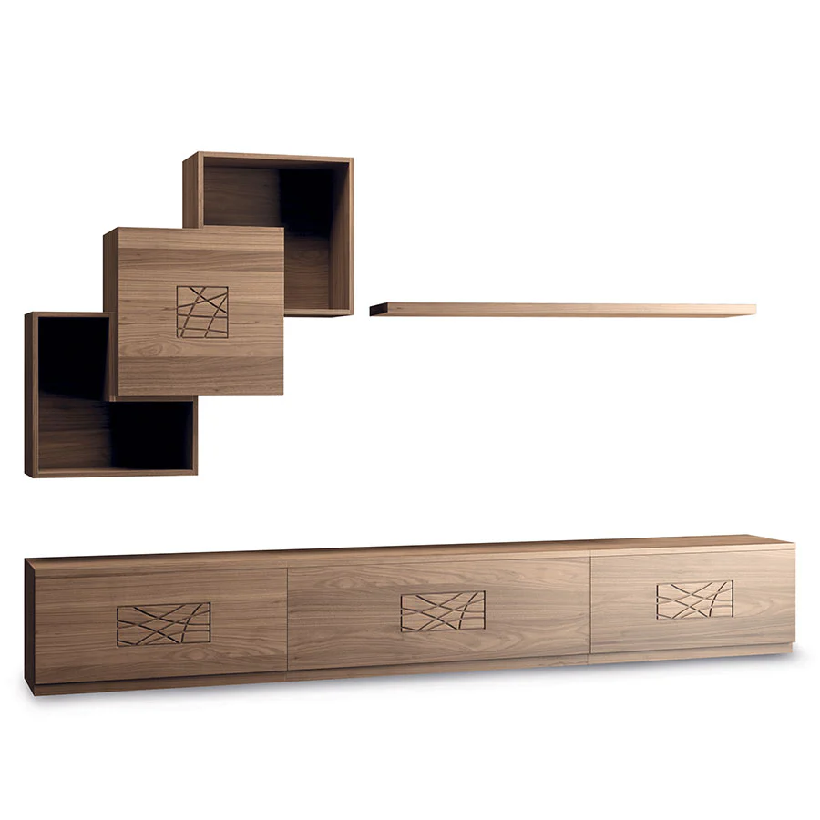 Non solo una Parete Componibile, ma la protagonista di un viaggio, quello della bellezza, fatto di armoniose geometrie date dalle naturali fiammature, insite nella essenza del legno di Noce o Frassino, dal tocco di originalità di «Comete», l’esclusivo dettaglio decorativo tailor made, che celebra la maestria delle mani artigiane componendo un delicato contrasto e dalle preziose simmetrie che provengono dalle nobili tecniche di lavorazione di lunga tradizione italiana.