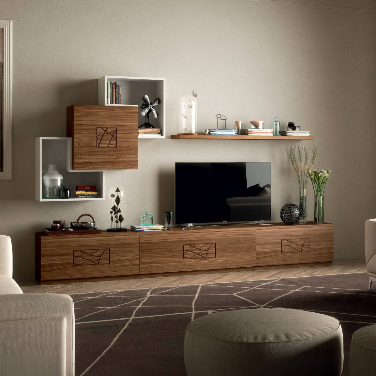 Parete Soggiorno Componibile Moderna in Noce Modigliani