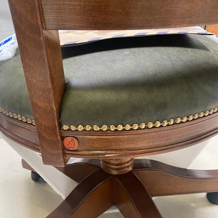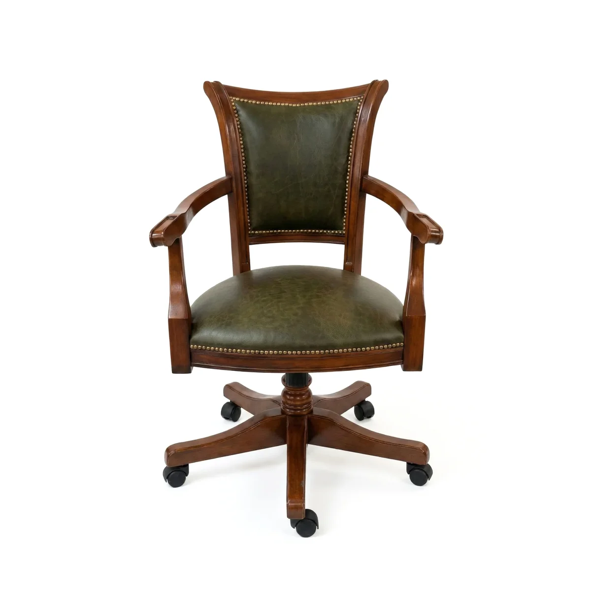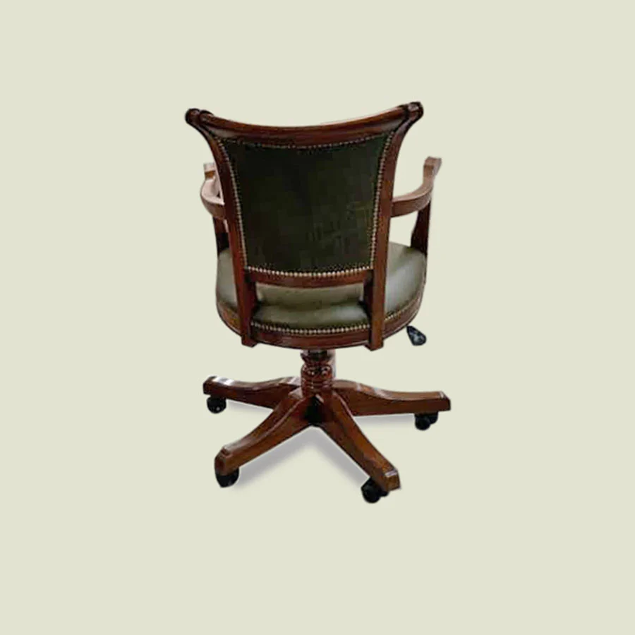 Poltrona Classica Girevole da Studio su Ruote in Legno Massello e Vera Pelle – Arte