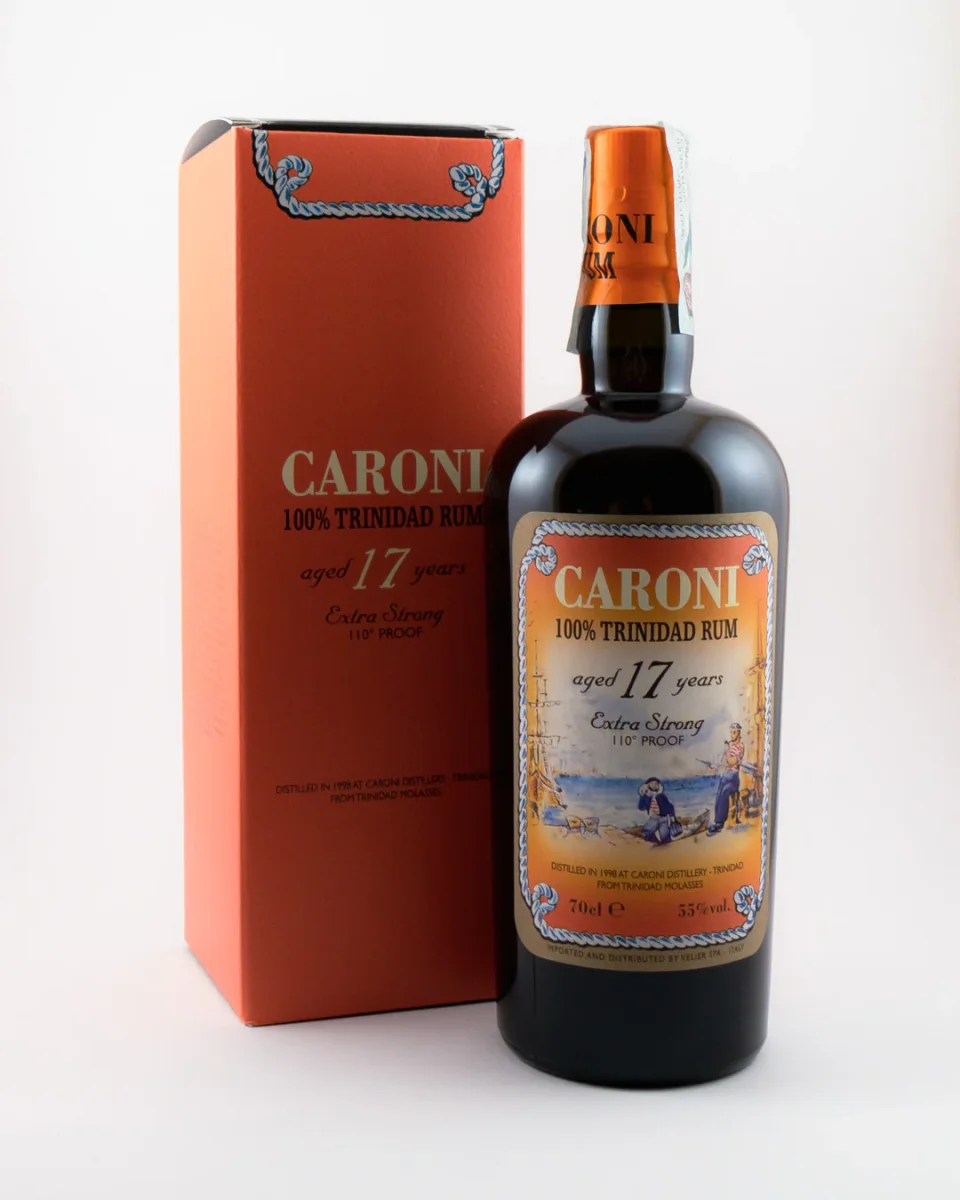 Descrizione: Caroni 17 è un rum distillato a Trinidad nel 1998, prodotto interamente con canna da zucchero dell’isola. Imbottigliato nel 2015 dopo un invecchiamento tropicale di 17 anni in botti ex bourbon, che ha portato ad un’evaporazione del 70% del prodotto iniziale. L’etichetta è un omaggio alle edizioni originali degli anni ’40. Bottiglia per appassionati e collezionisti.
