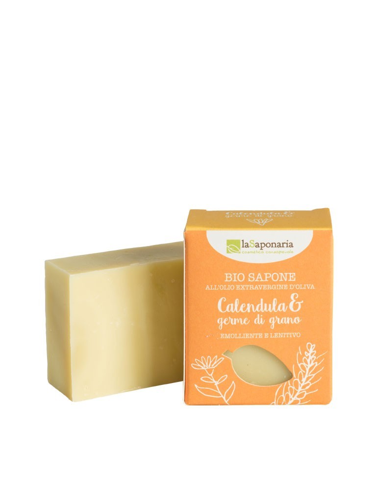 Olea Europaea Fruit Oil*, Cocos Nucifera Oil*, Aqua, Sodium Hydroxide, Triticum Vulgare Germ Oil, Citrus Aurantium Amara Leaf/Twig Oil*, Calendula Officinalis Flower Extract*, Sodium Phytate, Glycerin, Citric Acid, Linalool, Limonene, Geraniol, Citral. (* da agricoltura biologica)