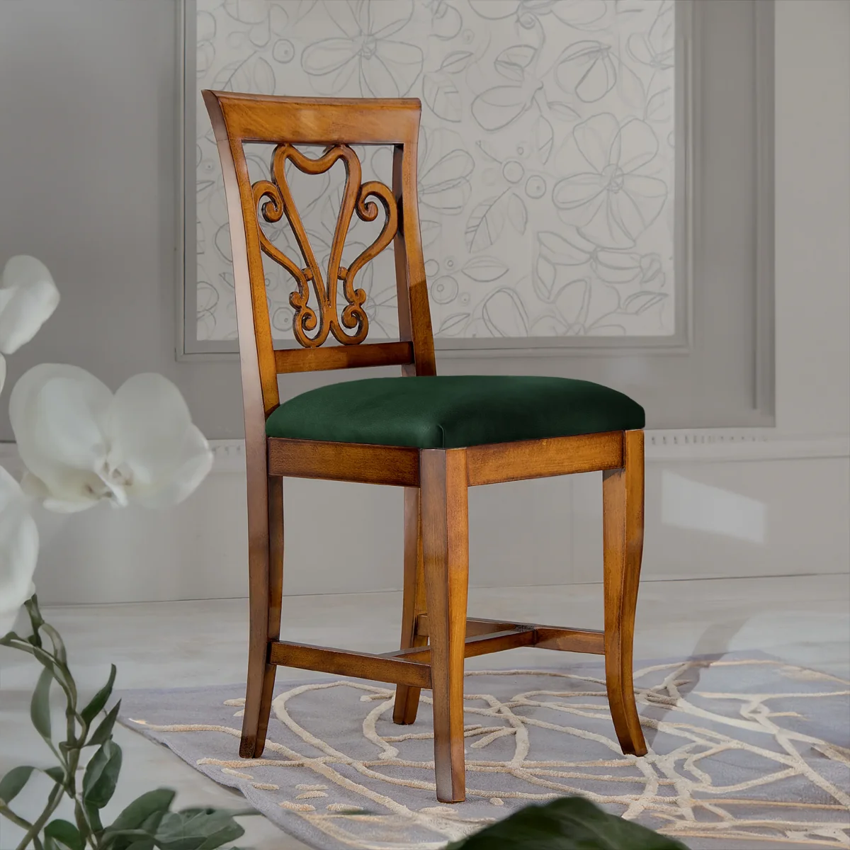 Lo schienale a cuore, finemente traforato a mano, è l’emblema distintivo di questa sedia. Un dettaglio iconico, che racchiude tutto il valore della lavorazione artigianale italiana, dove ogni segno è gesto, e ogni gesto è memoria. Il cuore intagliato è un omaggio alla bellezza che emoziona.