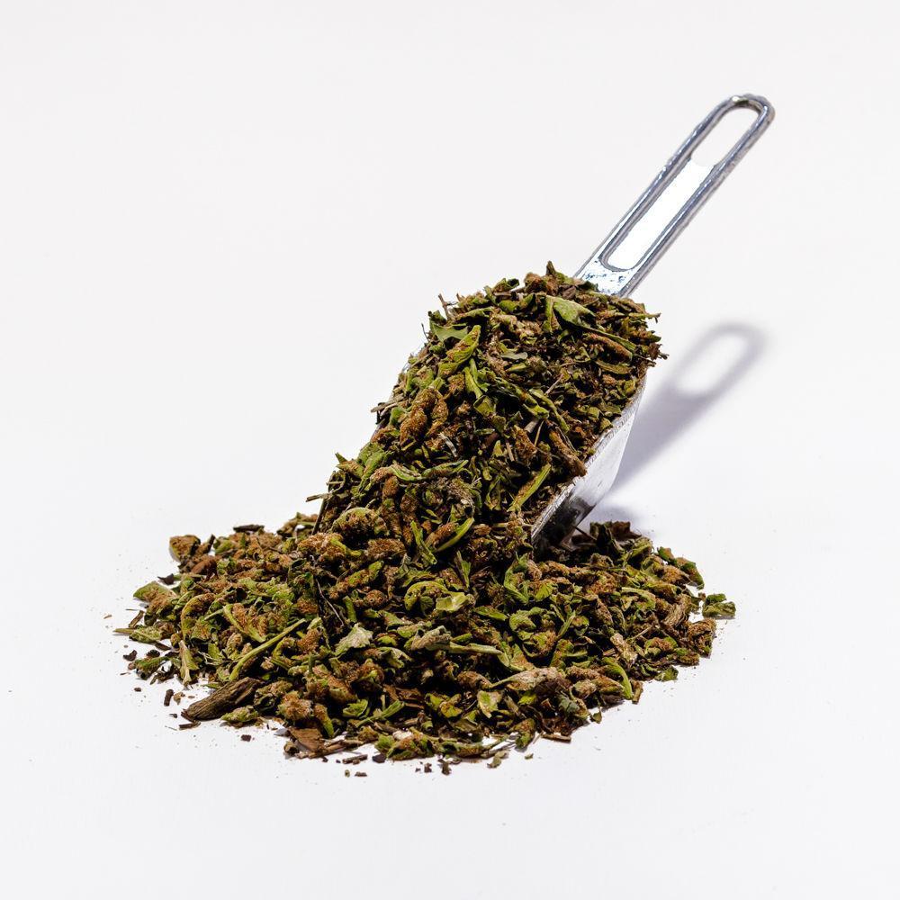 La droga è costituita dalle parti aeree della pianta (raccolte da maggio ad agosto), ricche in tannini, mucillagini, acidi organici, acido gallico e tracce di sali minerali.