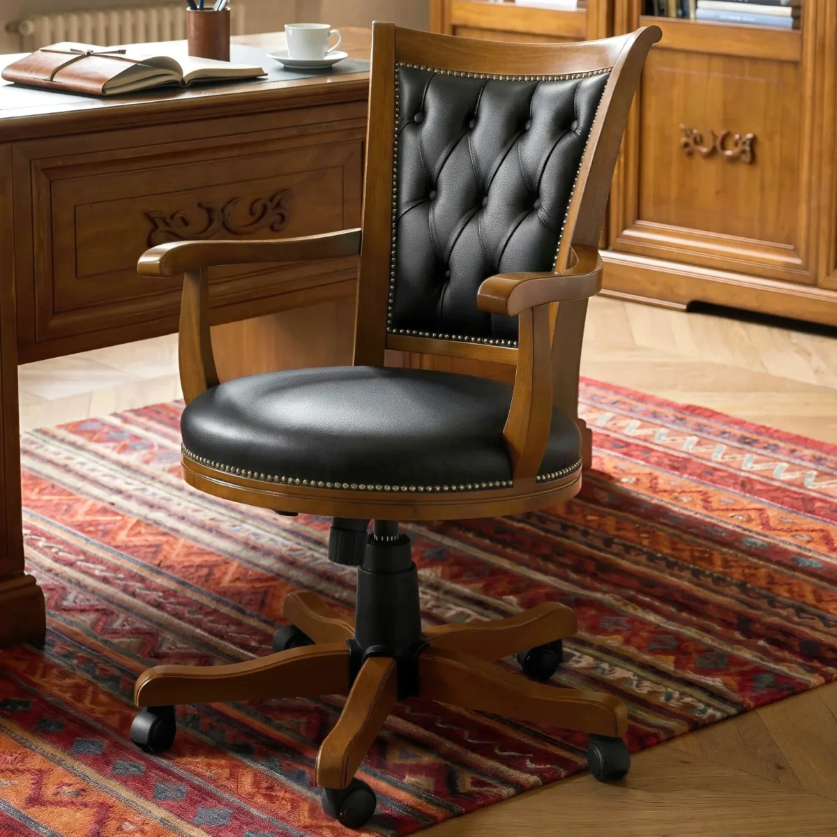 Poltrona Classica Girevole in Vera Pelle Capitonné – Cod. RH170