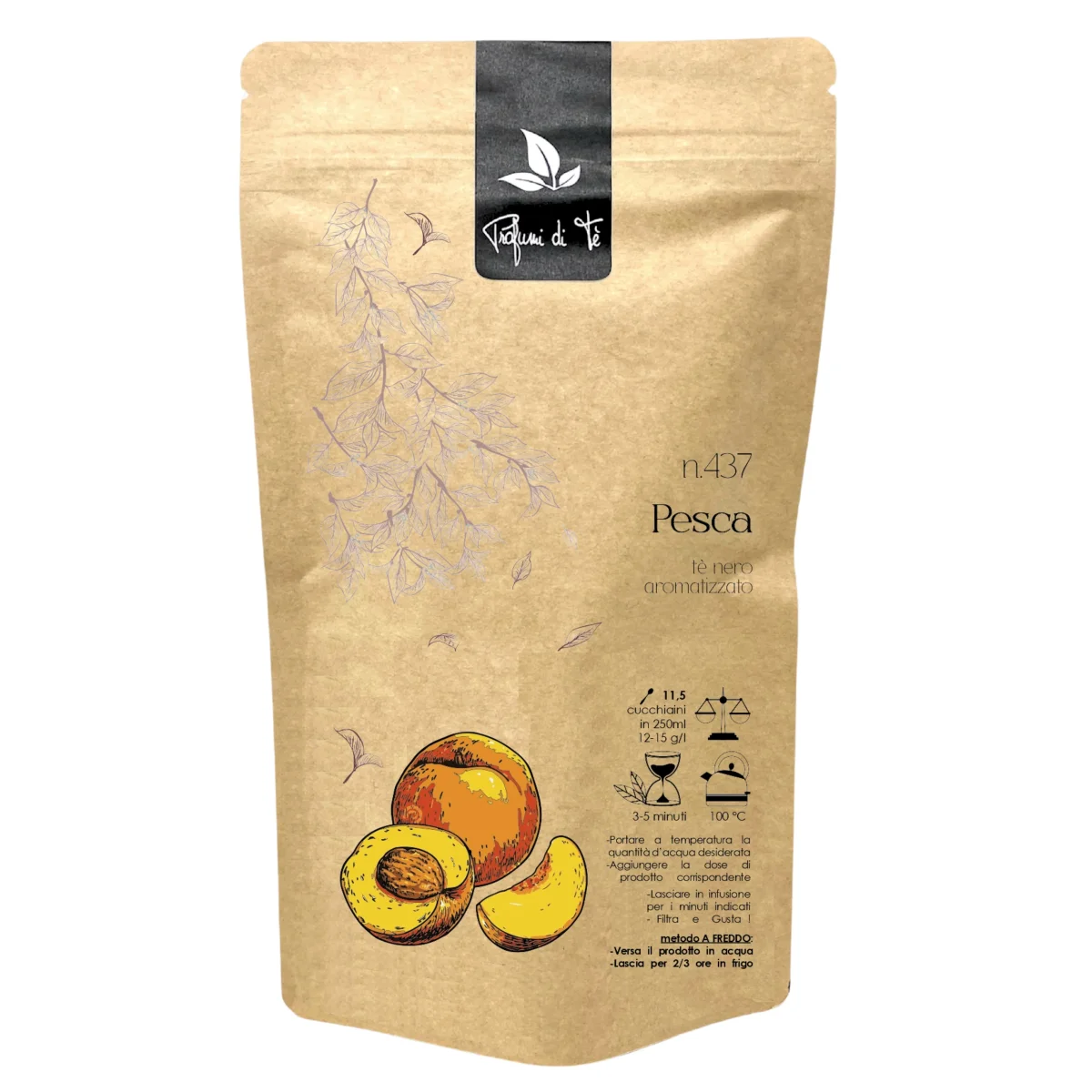 Il Tè Nero alla Pesca è una miscela raffinata di tè nero Ceylon di alta qualità e aroma naturale di pesca, che dona una piacevole dolcezza e freschezza a ogni sorso. Il sapore fruttato della pesca si combina armoniosamente con le note decise del tè nero, creando una bevanda perfetta per essere gustata sia calda che fredda, ideale in ogni stagione.